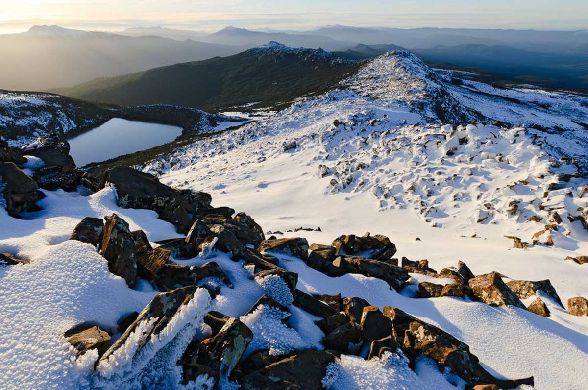 Hartz Peak (5 hours return): Hartz Peak is the highest point of the Hartz Mountains, and in fine weather the summit offers one of the best views of the south-west. The jagged outline of Federation Peak can be seen on the horizon. This is a relatively easy walk compared to some in the area, and perhaps the best to experience the mountains, glacial lakes and alpine moors of Tasmania s World Heritage Listed South West Wildnerness region without having to embark on a multi-day cross country hike. Credited with having the highest view/effort ratio of any walk in Southern Tasmania, you will see Federation Peak, Precipitous Bluff, Eastern Arthurs, Mt Weld, Snowy South, and Frenchmans Cap on a clear day. All walking paths are wintin Hartz Mts National Park. Access to the mountains is via Geeveston.