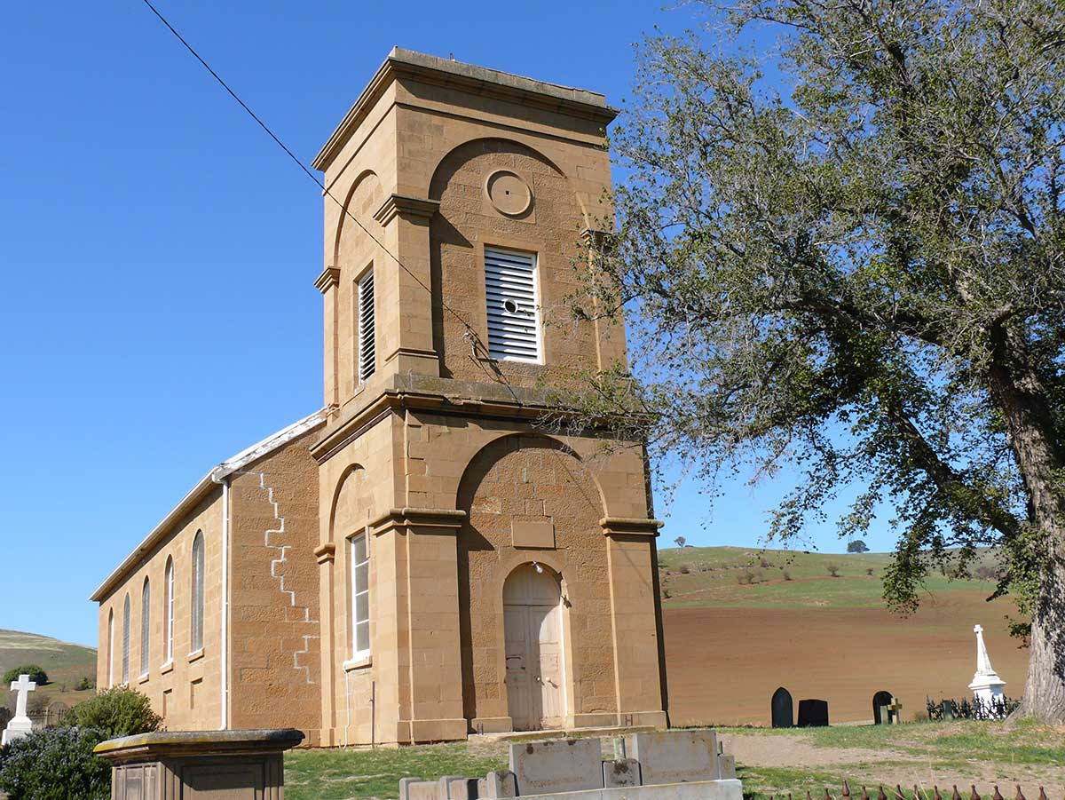 St Peter's Anglican Church: One of Australia's oldest churches, built c.1834 before the founding of Melbourne, when Van Diemen's land was in the Diocese of Calcutta, India. It is thought that its single door was a means to prevent convicts from escaping during services. The church was begun in 1834 but, when partly built, the walls had to be pulled down as they were unsafe. The church is of freestone and has a tower with a place for a clock, but one has never been installed. Half the cost of the building was provided by the Crown, partly through the ‘dog tax’, as was the case with several other churches. When Bishop Broughton, the first and only Bishop of Australia, visited Tasmania in 1838 he consecrated seven churches, St. Peter’s, Hamilton being the first on 8th May. The organ was bought for £80 in 1885. The architect was Edward Winch of the Colonial Architect and Engineer’s office and William Sibley was the contractor. Plans for the church were later modified by John Lee Archer. St Peter’s faced closure in 2017 but was reprieved from being sold as a result of community resistance.