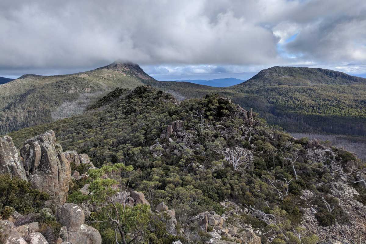 Collins Bonnet and its neightbour, Trestle Mountain, is climable. It very long and steep climb, particularly if doing both peaks, but features great mountain and valley views, both during the walk and from the peaks. The Collins Bonnet peak (Sleeping Beauty's nose) has a true summit feeling, and provides spectacular views of the surrounding range, Huon and Derwent valleys and more distant mountains on clear days. Many well known Tasmanian peaks can be seen in a broad arc from the north to south through west.