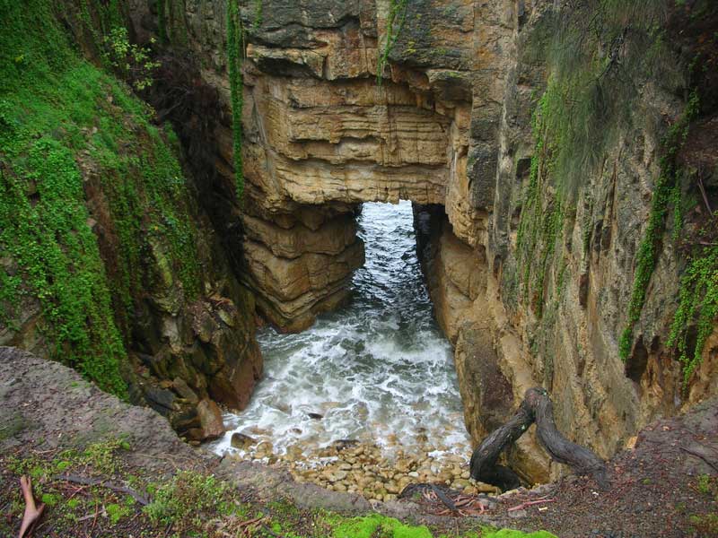 The Alum Cliffs walkway also offers some eminently photographic views. At the end of the walkway is the Blackmans Bay blowhole. The scenic delights of the area can be enjoyed from the walkway, or on the coastal drive through Blackmans Bay, Tinderbox and Howden or the views of Droughty Point, Bruny Island and D'Entrecasteaux Channel from Piersons Point. The route followed by today's Alum Cliff Track has long been a coastal path used by local people. The Alum Cliffs walking track commences on the top of the bluffs above the southern end of Hinsby Beach and runs along the top of the 50-100 m high Alum Cliffs for 2 km to Tyndall Beach. Approached from Kingston, Alum Cliffs Track begins at the northern end of Kingston Beach. There are multiple entrances along the route at Tyndall Rd, Harpers Rd, Taronga Rd. Metro bus stop is 100m south of the intersection of Taronga Rd and Channel Highway. Track notes