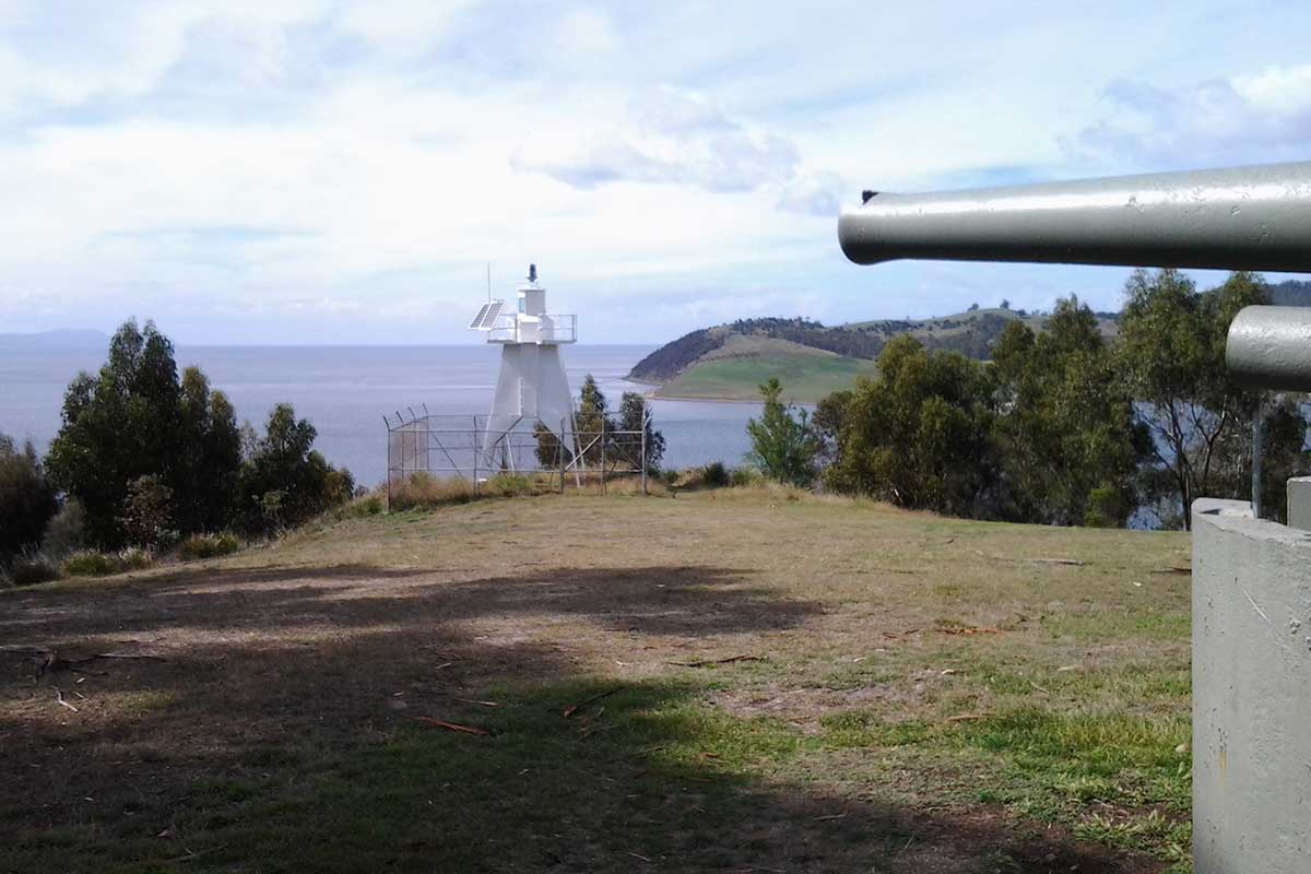 The Pilot Station was replaced by a fixed light, which looks more like something left behind from the set of a 1960s science fiction movie than a lighthouse. With a focal plane 87 metres, it flashes a white or red light, depending on direction, every 8 seconds from its 5 metre, partially enclosed square pyramidal metal tower. This light and the Iron Pot Island Light frame the entrance to the Derwent Estuary.