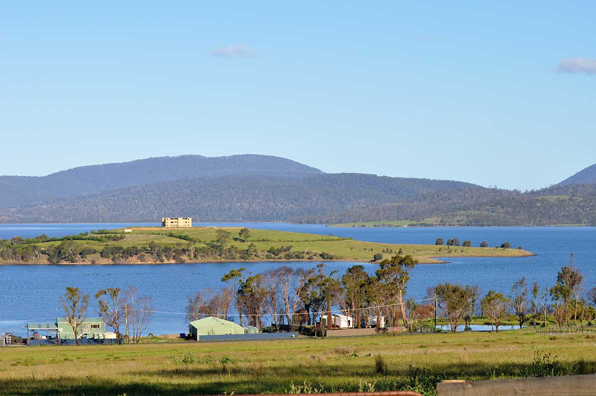 Located on Forestier Peninsula facing Norfolk Bay, Flinders Bay (8 km north west of Eaglehawk Neck) was once the site of a convict Probation Station which was established in 1841. Probation Stations at Salt Water River, Slopen Island and Impression Bay probation stations also opened that year. At that time, the Government stated no more convict assignments to settlers would be made; instead the Probation System was activated, whereby convicts were divided into gangs and sent to work in the under developed areas of the Colony.
