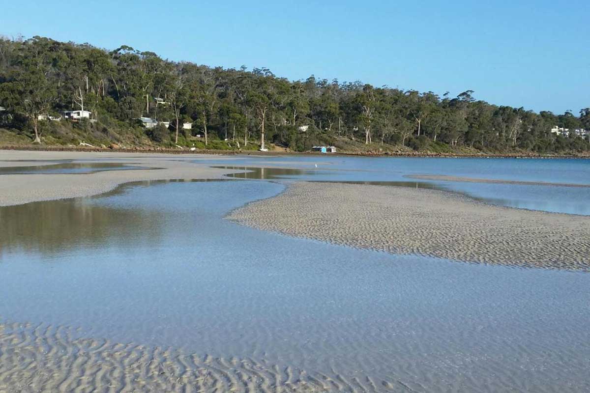 The sands of Marion Bay, to the immediate north of Forestier Peninsula in Tasmania's south east corner, forms some of the most beautiful beaches you will ever find in Tasmania. These beaches are used mainly by surfers, but the water is safe for swimmers provided you take care. The settlement here, accessed from Bay Road opposite the Copping turnoff, is little more than a huddle of beach shacks among the coastal dunes near the tidal flats, otherwise the area is deserted and unspoilt. A large sand spit formed where Bream Creek enters the bay is ideal for beach walks, shell collecting and bird watching. Migratory Little Terns have been discovered breeding here and there have been sightings of numerous birds that are far from their normal breedings grounds.