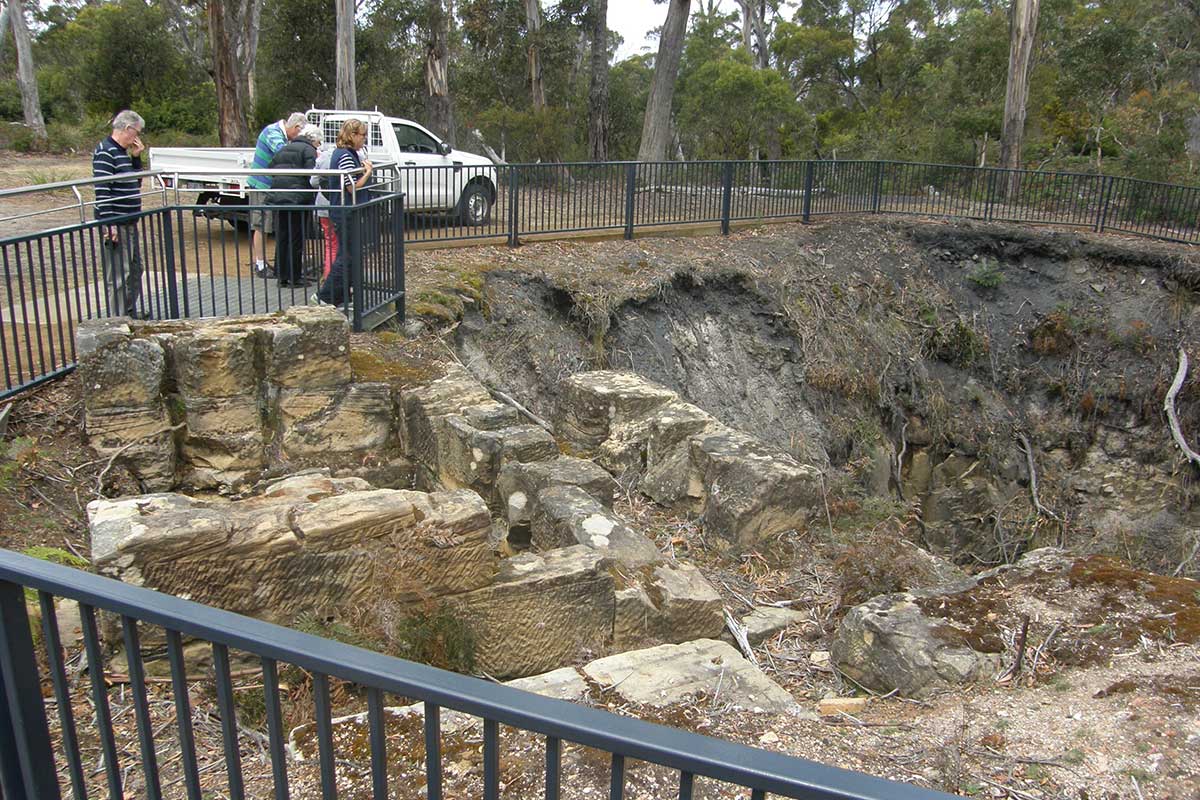 Westward from Eaglehawk Neck and Woody Island lay the dreaded Coal Mines. Sixty of the 'marked men were stationed here under a strong guard. At the Coal Mines was the northernmost of those ingenious series of semaphores which rendered escape almost impossible', such was Marcus Clarke's description of the penal settlement at Saltwater River in his famous book 'For the Term of His Natural Life'.