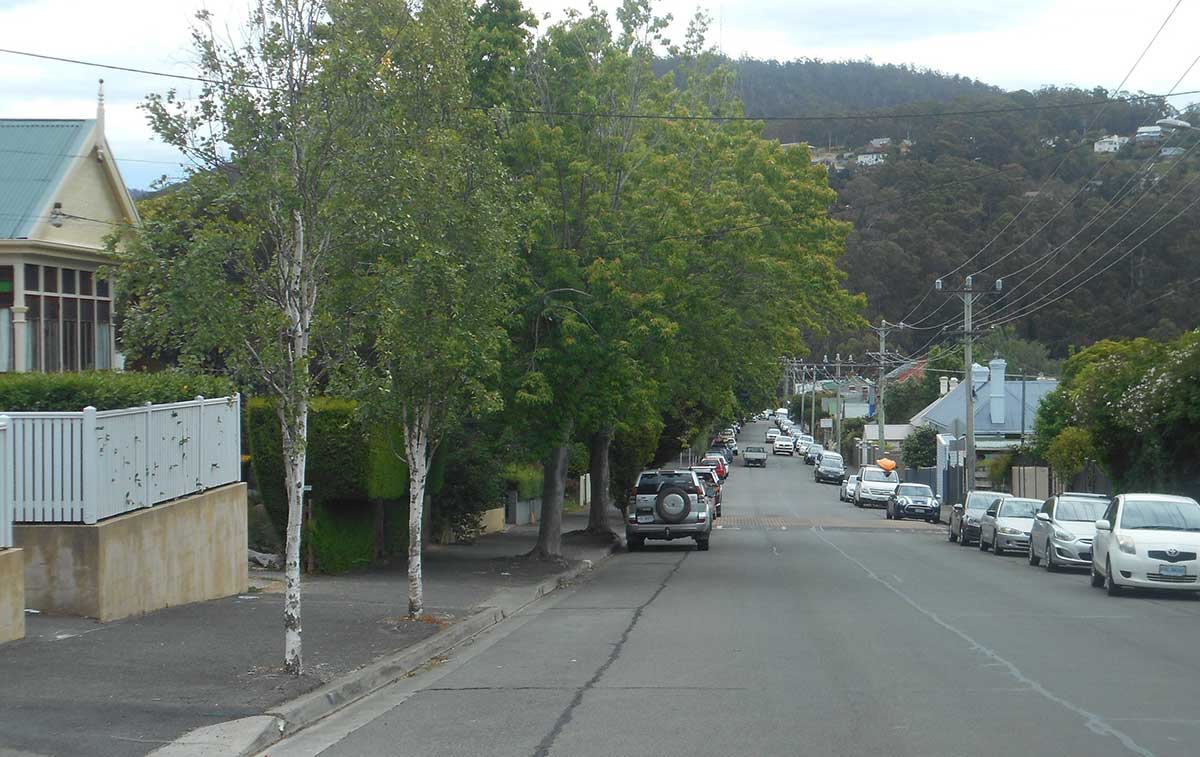 The precinct is marked by steep streets rising up the hillside with extensive views over the suburb and back to the northern end of the rivulet. The main road of Macquarie Street intersects with Washington Street which continues to rise steadily south westerly through the precinct until it terminates at Congress Street. Views and vista from the precinct extend beyond the boundary of South Hobart to the wooded slopes and grassed knolls of the hills to the north and north-west which are an integral part of the landscape and significance of the area.