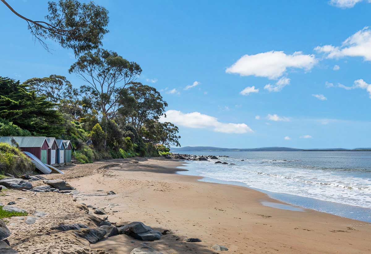 Named after Joseph and Mary Louisa Hinsby who arrived in Taroona with their children in 1908, purchasing 27 acres of land on 27th June 1908 and building a home at the top of Churchill Road, called “Bellevue”. In 1905 there was a junior school on the property. The family home “Bellevue”, burned down some decades ago. A reserve in the area is named after Mary Louisa Hinsby, who originally donated the land to Council in 1950 to be made a children’s playground. The Alum Cliffs walking track commences on the top of the bluffs above the southern end of Hinsby Beach and runs along the top of the 50-100 m high Alum Cliffs for 2 km to Tyndall Beach.