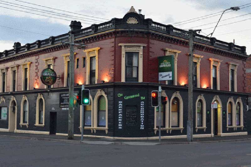 Built in the 1880's, The Greenwood Bar (former Lloyd's Hotel) is a fine example of a sophisticated Victorian pub in an Italianate design style. The building, an important townscape element, is of two storey, stuccoed brick construction with a balustered parapet (now without the original finials) and a bracketed cornice. The upper level windows have moulded surrounds, and bracketed shelves and decorative panels over. A heavy cornice divides the two levels. The lower level windows have moulded surrounds, arched tops, decorative keystones and decorated lugsills. The corners of the building are quoined.