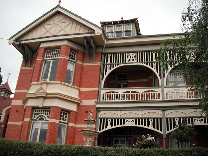 1881 - Originally a Georgian house (single storey with verandah and series of French windows) which was added to dramatically at the turn of the century. Its Federation period additions by J and T Gunn, who were at the time Launceston's master builders and craftsmen, dramatically enhanced the property. The 6.2ha of magnificent gardens are still as they were in 1859 with kitchen garden with hedge borders, lean to glass house, sweeping drive up to central lawn with fountain.