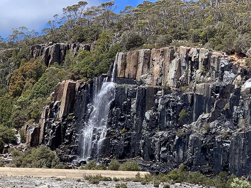 The viewing platform at the secenic lookout overhangs a sheer cliff face over 220 metres high and provides magnificent 180° views of the Fisher River Valley, a gorge before you of sheer dolerite cliffs, carved out by ice and water moving off the plateau and down the valley, shaped by ice and rain over millions of years. Directly across the valley is Clumner Bluff (1559 metres). In the distance is the vista of Cradle Mountain-Lake St Clair National Park, views to Mt. Ossa, Tasmania’s highest peak (1617 metres) which lies in the heart of Tasmania’s Central Plateau.
