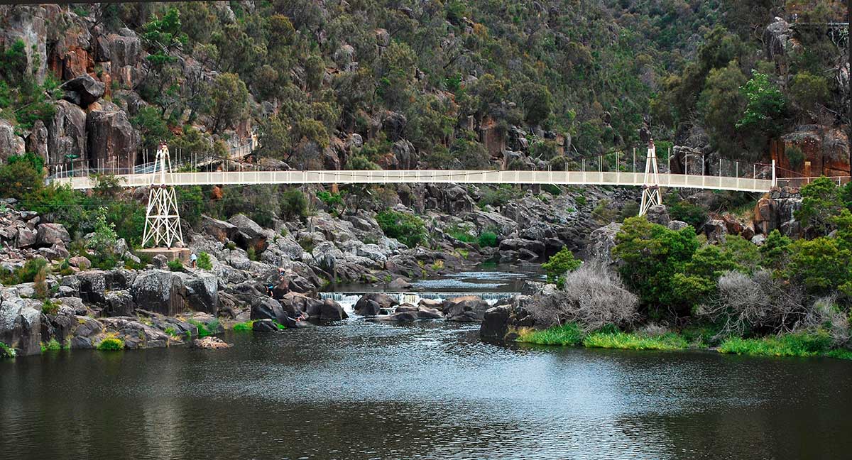 Cataract Gorge, situated a few minutes walk from the centre of Launceston, is that city's closest natural attraction. Here the South Esk River plunges through Cararact Gorge, a canyon which becomes both spectacular and noisy after heavy rain. The gorge has walks, swimming pools, a suspension foot bridge and river cruises.