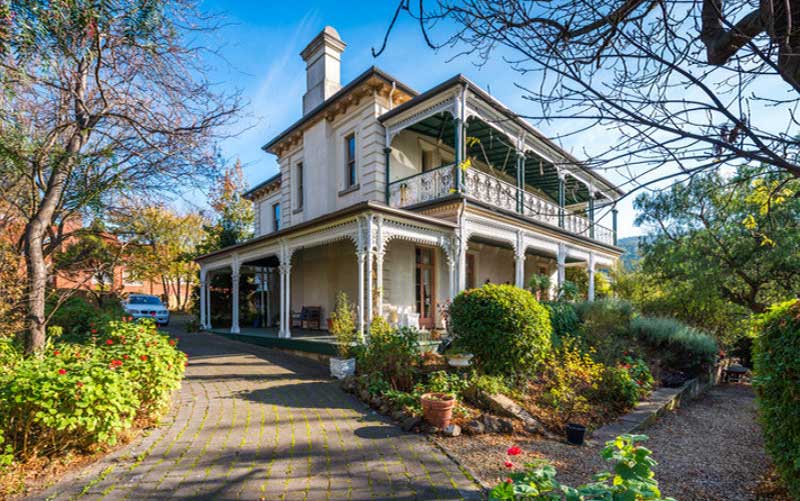 Macquarie Manor, 172 Macquarie Street, Hobart. Designed by Henry Hunter and built by Hobart builder James Gregory in 1875, it was originally home to the surgeon Dr Richard Stonehewer Bright.