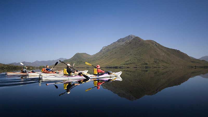 Sea kayaking is an activity that pits man against nature on the open sea, and there are few places around the Australian coast where the activity is more challenging and rewarding than the south-west corner of Tasmania. Roaring 40s Wilderness Tours operates three to seven day kayaking eco-tours out of Hobart to the magnificent Tasmanian Wilderness World Heritage Area. Guests are flown across isolated coastlines and mountain ranges to land deep in Southwest Tasmania, where they explore pristine wilderness harbours and ocean coastlines, remote islands and wild rivers. Under the expert eye of qualified instructors and guides, they paddle through ever changing landscapes from campsite to campsite.