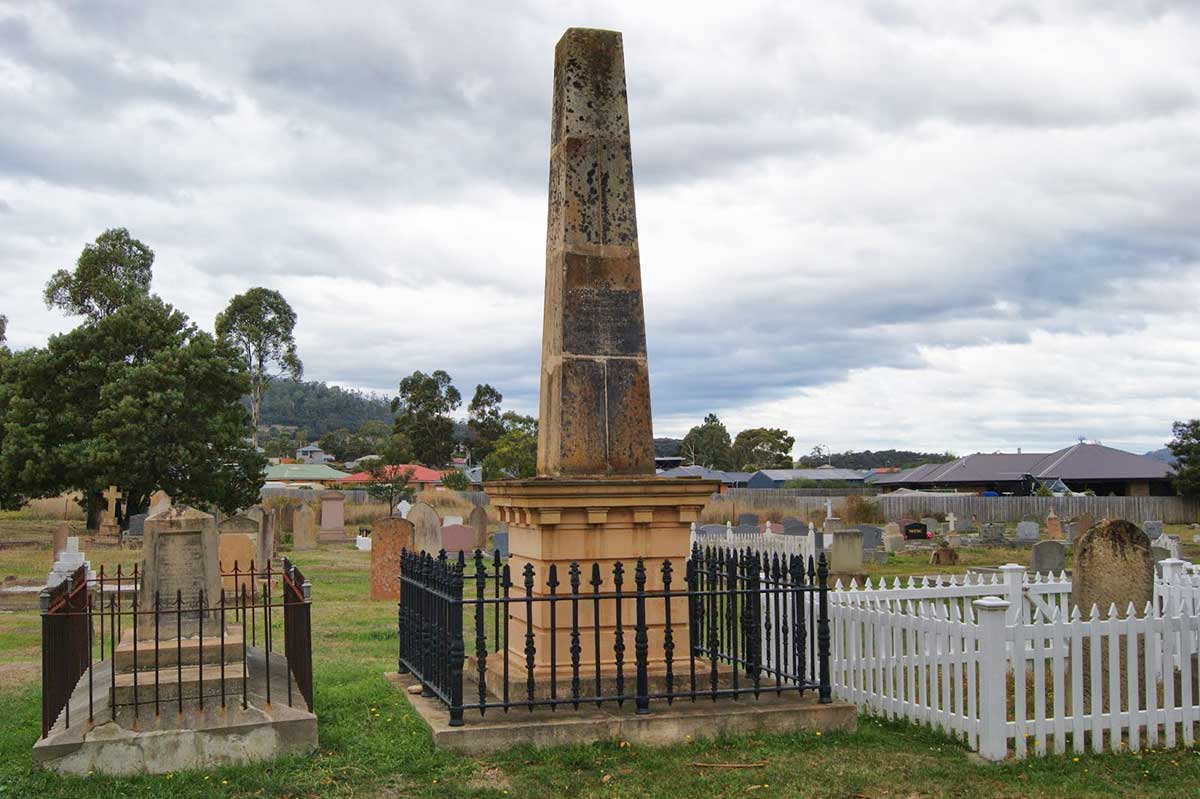 Knopwood's Tomb is a memorial to the Reverend Robert Knopwood, MA, who as the first chaplain of Van Diemans Land played an integral part in the social and religious history of the local community and the formation of the Anglican community in that State. The tomb has a stucco base with stone obelisk and iron railing surroundings. It records the date of the Reverend Robert Knopwood’s death in September 1838. Knopwood who arrived in the colony in 1804, was the first Anglican chaplain in Van Diemans Land. The first service in Rokeby was conducted by the Rev Knopwood in 1821.