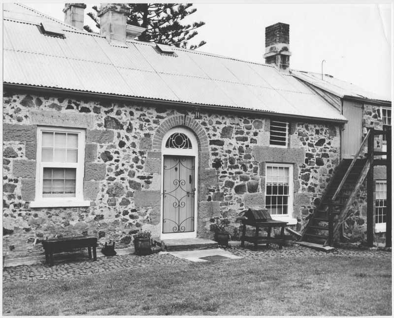 Rokeby Watch House (1850), now a private residence, has been used as a police station, courthouse and gaol with three cells. The single-storey, sandstone, Gothic-style building features a central double-storey section, rooms for the constables, a watch house keeper and a magistrate, a retiring room and a day work room for prisoners. A nine foot high slab fence, affixed to the walls, not only secured the prisoners, but enclosed the two outside “dunnies”. Location: Corner Hawthorne Place and High Street, Rokeby.