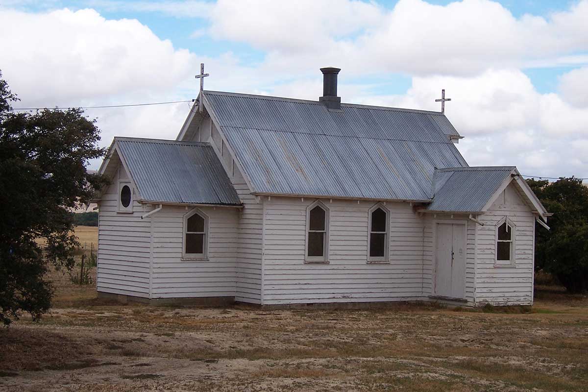 Two of the other townsite buildings still standing these days are the All Saints church and a simple chapel that has served a variety of functions during its life. The latter was erected in 1866 for use as a Congregational chapel and schoolroom (in those days churches ran the local schools). From 1901 to 1939 it was used as a state school and in 1942 it was transferred to the Church of England. The chapel was restored in 1990 by members of the Dick family in memory of George Abercromby Dick (1909-1987), owner of nearby Mt Vernon estate from 1940 to 1967 and for 20 years a trustee of the Diocese.