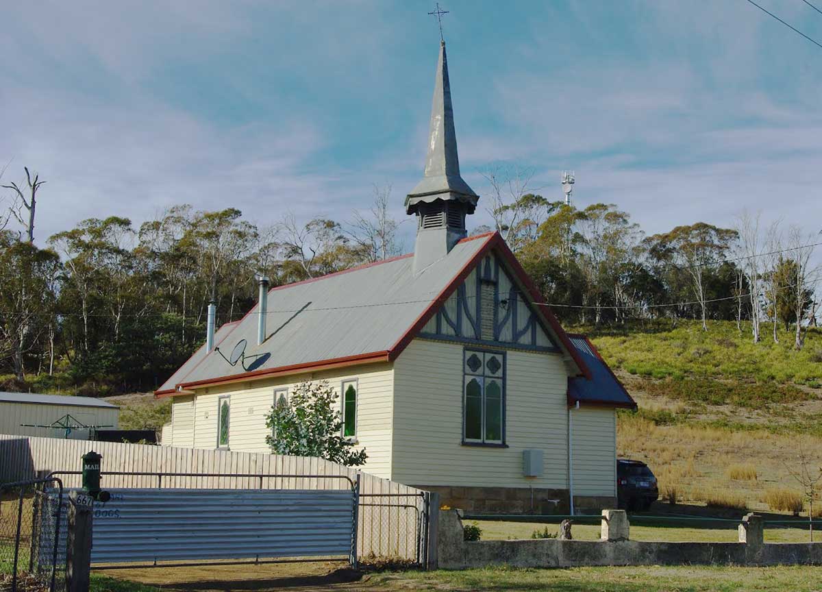 St George’s was the second church built at Parattah with the foundation stone for the building laid on 6 February 1903. The land for the church was given by a Mr. Burbury, member for the district. The church was completed in early 1904 and was dedicated in late September by John Edward Mercer, Bishop of Tasmania. St George’s did not quite reach its centenary with services ceasing in the 1990’s and the building was sold in 2004. It was in a poor condition at the time of its sale but it has been subsequently restored and is now a house.