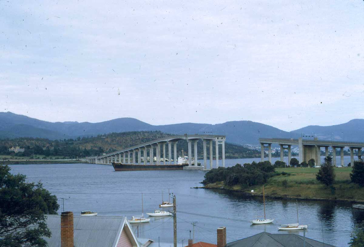 The original Tasman Bridge across the Derwent River, which the current bridge replaced, was a unique floating bridge which was opened in 1943. By 1955, constant damage to it by storms and high seas and its inability to handle the increased traffic using it led the Tasmanian Government to build a replacement.