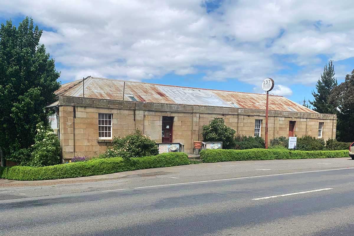 As its name suggests, this building began its life in the early 1800's as the Campbell Town Brewery. It is a fine example of a Georgian brewery, built about 1840 by Hugh Kean, publican and builder. It is in excellent condition having been restored in 1980/81 with National Estate Grant funds. Set beside The Red Bridge on its southern side, this building has served as a boxing gym, a school, as a military drill hall during the First World War, a masonic lodge in the 1920's, a girl guides hall, and also as an antiques shop for many years until recently, following major building renovations, as a successful cafe and providore. There are old original cobbled floor stables at the lower level. 137-141 High Street, Campbell Town.