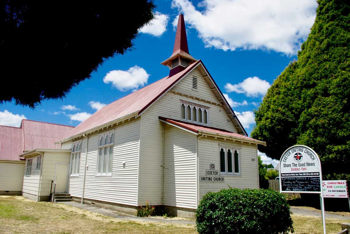 Exeter Uniting Church is a rather plain looking weatherboard building but its history is of interest. It is in fact not one church but two. Established 1916, it is Exeter’s oldest existing church but it actually has an even older history. In December 1951, the church became the new home for the Winkleigh Methodist Church 11 km away, which was transported to Exeter as an extra building on-site. The two sections were later joined to make one larger building. The church celebrated its centenary in 2016 but Methodist services in Exeter took place at least two years before the church was built with meetings taking place at the Gravelly Beach Hall and the Exeter Showgrounds Hall. The earliest Methodist Church in the West Tamar region is the historic church at Supply River.
