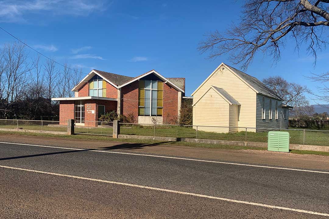 The church used bricks from a demolished brewery, possibly in Longford, and it was completed at a cost of approximately 950 pounds. The building was designed by Harry Conway, a Launceston architect. It is a largely brick building with freestone corbels and copings, and is of a Gothic Revival architectural style. Hagley Presbyterian Church's first services were held on 14 December 1879. A manse was built nearby in 1884.The church was intended to seat 250 people. By 1973 the Presbyterian congregation at Hagley was very small and there was cause for concern about its future. The building is still in the town, opposite the original Hagley hotel, but is now privately owned and no longer used for worship. Location: 5 Meander Valley Road, Hagley.