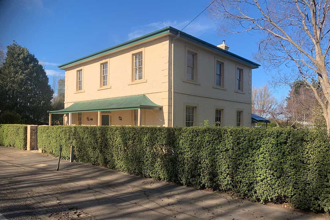 A rather restrained two storey Georgian brick house with slate roof. The main feature of the house is the central six panel front door, side lights and curved fanlight over. The supporting arch has a keystone. At the rear is a large central semi circular headed stained glass window above the stair landing. This Georgian homestead gives a very good idea of the character of the relatively anonymous early settlers and their lifestyle. Location: 189 Selbourne Road, 2km north of Hagley.