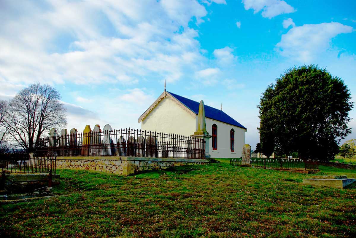 Kirklands Presbyterian Church, built mainly with convict labour, was dedicated in October 1836. It is closely associated with the establishment of the Presbyterian Church in Tasmania. It opened in 1836 and was one of the earliest Presbyterian churches in Van Diemen's Land. Presbyterian worship at the settlement along the Macquarie River commenced in the late 1820’s, some time before the Kirklands church was built. Today the church appears very much the same as when it was built. Kirklands' substantial cemetery is probably one of the best tended in rural Tasmania. It has large numbers historic headstones, reflecting the churches long history and the generations that once populated this area.
