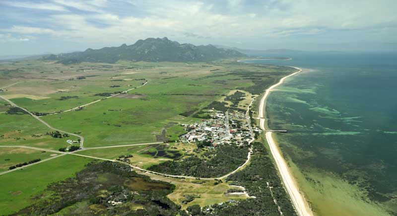Tasmania's largest and Australia's 6th largest island, Flinders Island is located in Bass Strait, some 20 km from the north-eastern tip of Tasmania, Australia. It is the largest island of the Furneaux Group. Flinders is a long, narrow island, 75km long and 40km wide, with the Darling Ranges running along the middle of the island. With a height of 756m Mt. Strzelecki is the island's highest peak. The total land area of the island is 1.333 sq km. Its population is just over 1000 people. The major population centres are Whitemark (which has the island's main airstrip) and Lady Barron (the port).