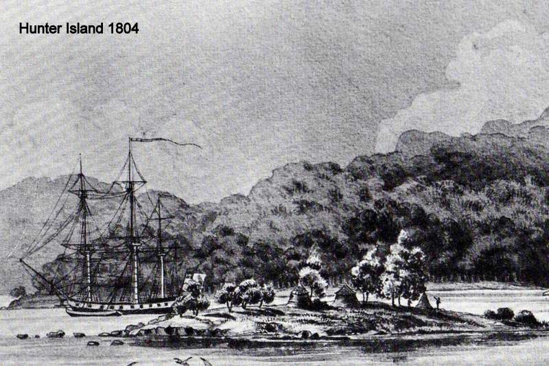 Hunter Island's partially isolated and relatively secure location made it a logical site for storage and the colony's first Government Stores was built there in July 1804. The site proved to be quite impractical. Access to the Stores on Hunters Island was only via a tidal sandbar that linked this small lump of rock with the shore, which was half the time under water.