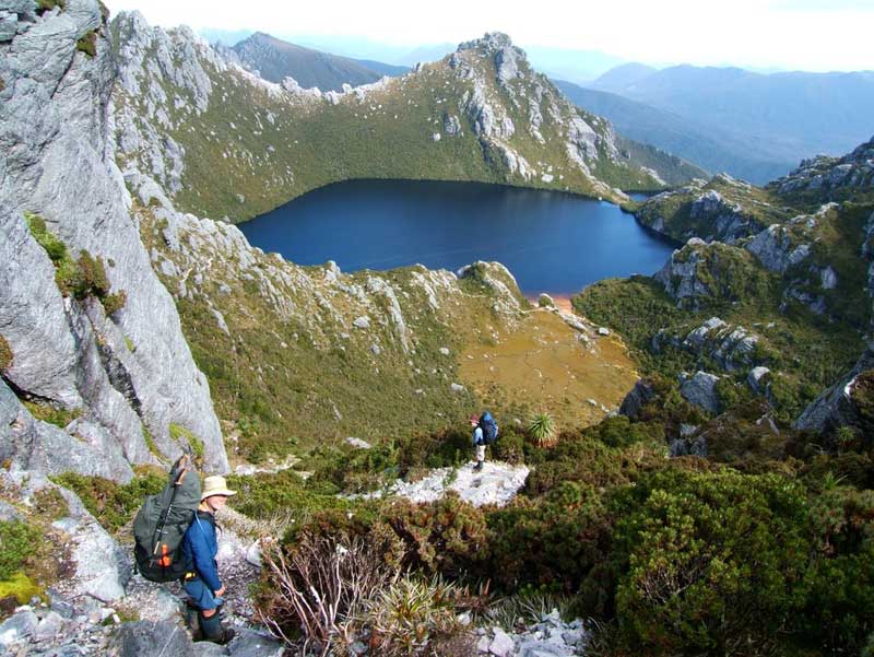Like Lake Geeves, Lake Oberon is situated high in the West Arthur range in the wilderness area of south-western Tasmania. Many of the mountain lakes in the Arthurs are named after the planets and their satellites, the smaller after the asteroids and peaks after the constellations. For those who brave the elements and trek though the range, these names seem strangely appropriate, given the extra-terrestrial feeling one gets when hiking across the mountain tops of this breathtaking region. Few return believing there is another walk in Australia that can top this one.
