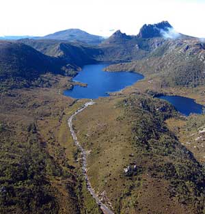 Tasmania's premier long-distance track, it is a six day walk travelling 65 km through the heart of the Tasmanian Wilderness World Heritage Area. Beginning at Cradle Mountain, The Overland Track is a true wilderness walk which travels through spectacular dolerite mountains, near beautiful waterfalls, through a variety of fascinating ecosystems and close to Tasmania s highest mountain, before finishing at Australia s deepest lake, Lake St Clair. The stunning scenery and the physical challenges of this mountain walk have ensured that the Overland Track has built a national and international reputation as one of the great wilderness bushwalks.