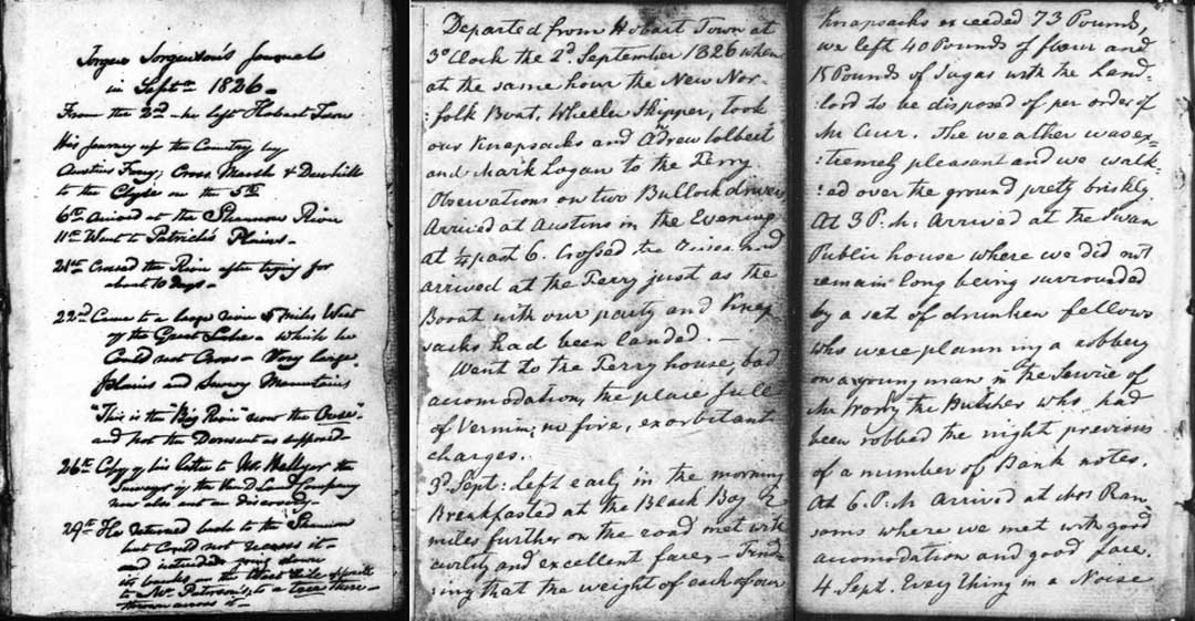 Jorgenson kept journals of his expeditions in Van Diemen’s Land in the late 1820s and also wrote a history of the Van Diemen’s Land Company which included ‘the first record of the way of life of the Aborigines under the stresses of European settlement, by one who had seen them in their natural surroundings and pursuing, to some extent at least, their natural activities’ (Plomley 32). Jorgenson was involved in the beginning of the Black Wars in 1824, with the arrival of Arthur, and with the organisation of the ‘Roving Parties’ for the protection of white settlers and the capture and removal of Aboriginals. He was also a chief organiser of the Black Line in the Oatlands district in 1830.