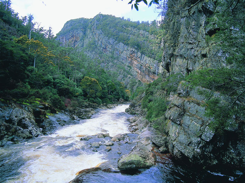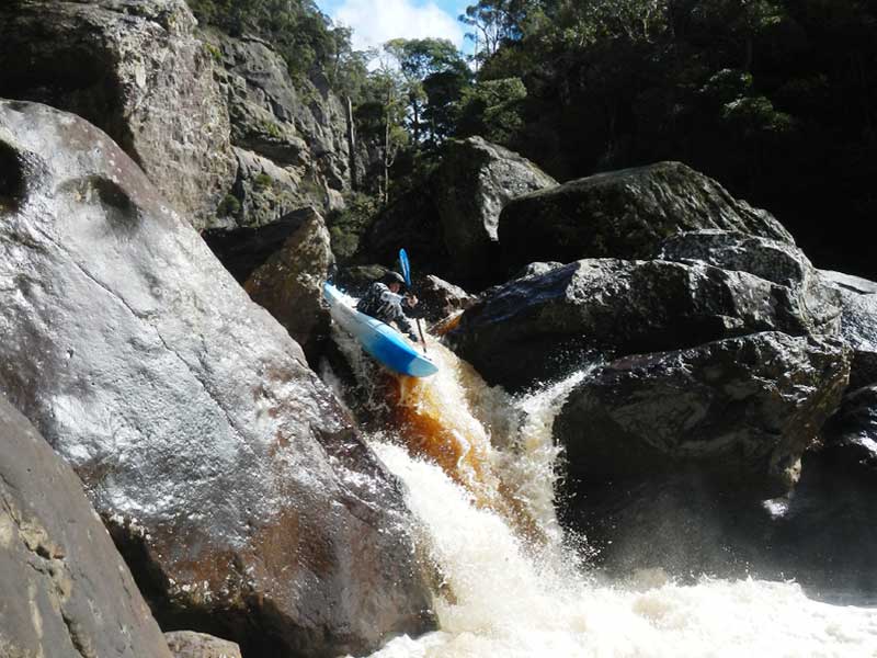 The river is characterised by technical grade 4 rapids followed by several waterfalls (8 m and 10 m), after which the river flattens considerably though still has some large grade 3 rapids. To start, seal launch from the rock ledge on the Leven Canyon walking track across the footbridge over a ravine. Follow the track for 50 m or so before heading right to reach the river at a rock ledge 3 metres above a deep section of flat water.