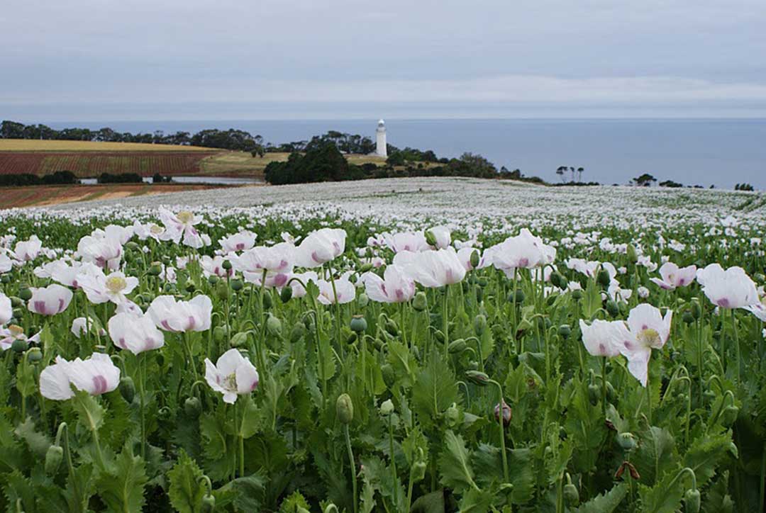 This striking landform is composed of basalt lava likely to formed as a crater-filling lava lake. The lava would have been ponded by granular material forming the slopes of the volcano but which has now largely eroded away. Related flows on the landward side have been dated at 13.3 million years (Miocene). Driving to the top, when you reach Murdering Gully Road (one wonders what happened to evoke that name!), continue on Tape Cape Road past the tulip farm. You then have a choice of taking a left turn to the lighthouse or going straight ahead to the lookout. Matthew Flinders sailed in their sloop 'Norfolk" through Bass Strait, and named the large promontory Table Cape, which has now become the local landmark.