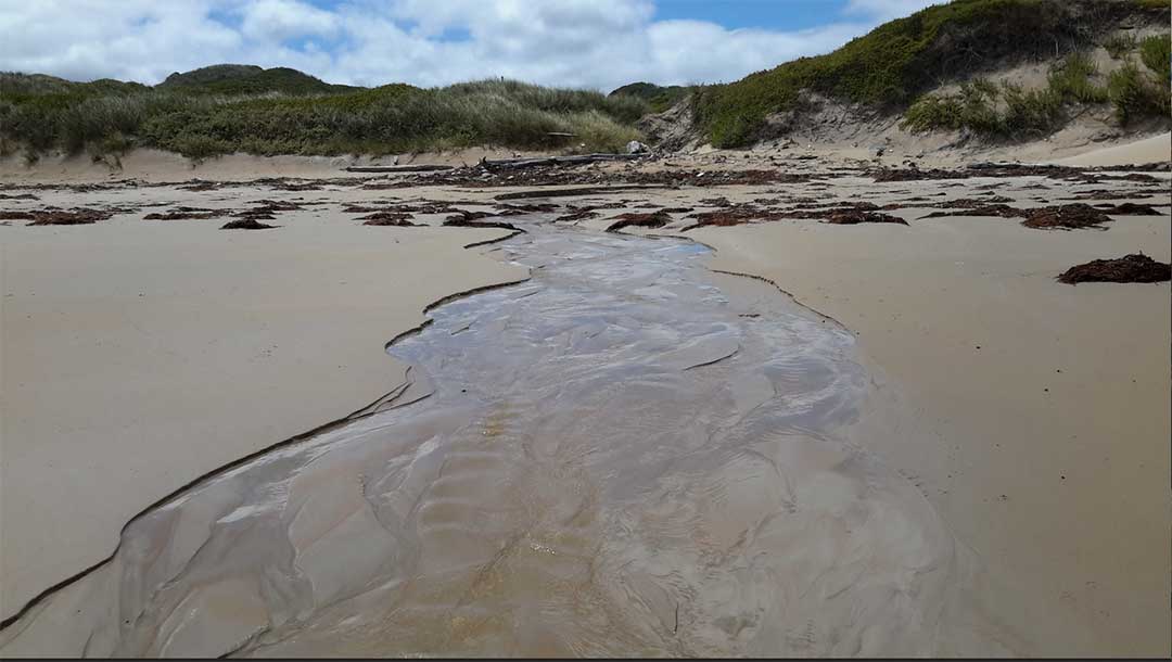 On the beach between Preminghana and Marrawah a most unusual phenomena occurs. Fresh water bubbles up from springs which are both underneath the rocks and on the beach itself. This water drains from Mt. Camerson West and collects underground, coming to the surface on the beach. This may well explain why Preminghana was so important to the indigenous people of the area.