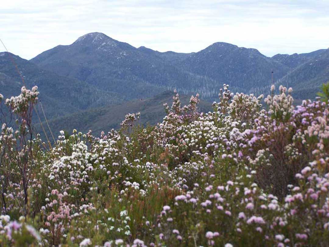Meredith Range (reaching over 900 metres) is an undulating granite plateau, the largest exposed area of granite in the south of the Tarkine region. It affords spectacular views of Cradle Mountain, and the South-West. Pockets and stretches of tall, implicate and sub-alpine rainforest exist amongst the granite pillars and plates of the Meredith Range. Access to Meridith Range Regional Reserve is by four-wheel drive vehicles only.