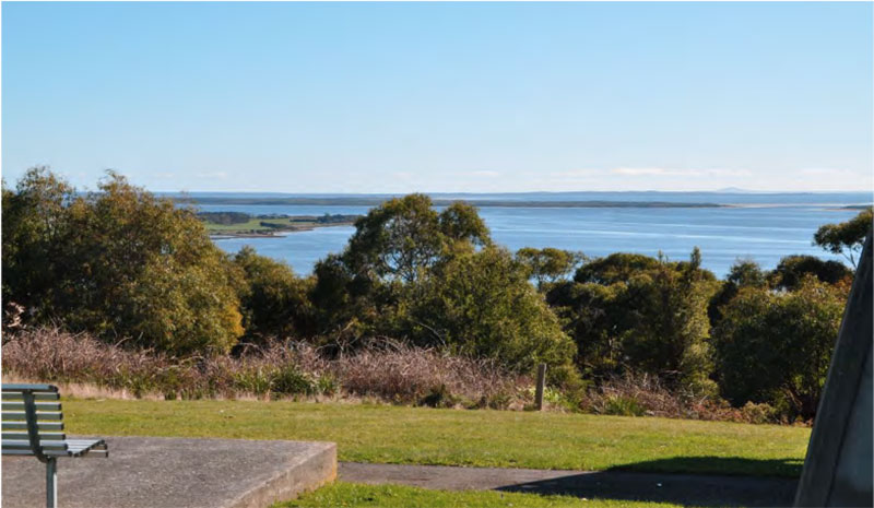 The Apex Lookout (Massey Street) on Tier Hill, behind the town, gives a full panorama of the Duck River estuary and offshore islands.