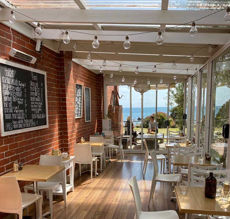 In a nutshell: An intimate cafe with great atmosphere, interesting decor, and outdoor dining beside Bass Strait.