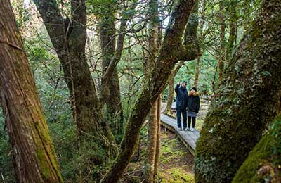 An easy, magical walk through a rainforest with plenty of photo opportunities. There are about 200 stairs to the viewing platform. A hidden jewel of The Tarkine.