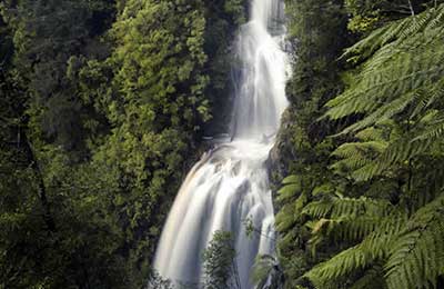 Four short walks lead to the base of these picturesque falls, its viewing platform, an old sawmill boiler and the nearby “Big Tree”.
