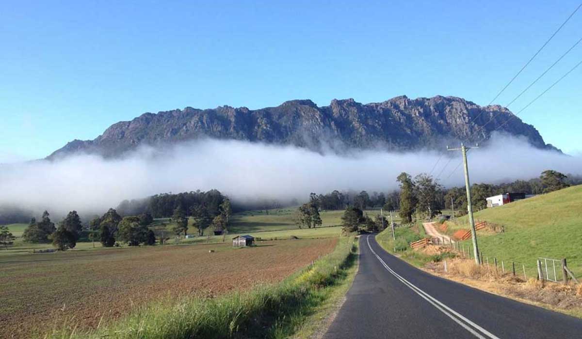 Mount Roland stands at 1234 meters above sea level on the northern edge of the Great Western Tiers region of Tasmania. It provides an imposing backdrop to the Kentish Municipality and for the town of Sheffield. Like many of Tasmania's mountains, at first sight it would appear to be a difficult climb. From most angles it presents the onlooker with the steep bastions of seemingly impregnable cliffs. These ramparts form the containment walls of a huge dolerite plateau of which the summit tor is but a small part.A number of well marked bushwalks provide a day's exercise. There are walking tracks from Claude Road and Gowrie Park to the summit. The walk includes the plains and plateau leading to the peak. There are two tracks to the summit, which provide 360-degree views to Bass Strait, Cradle Mountain and Barn Bluff. Mount Roland stands at 1234 metres above sea level.