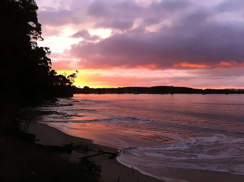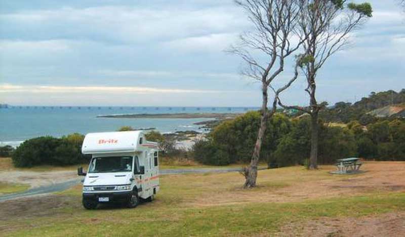 20 km south-east via Bass HighwayA pretty spot, and a great place to view the sunset over Bass Strait. It has a curving 250 m long north-facing beach bordered by low rocky points. It is backed by a narrow band of scrub, with a car park and small picnic and camping reserve at the western end of the beach and the highway immediately behind the eastern end.