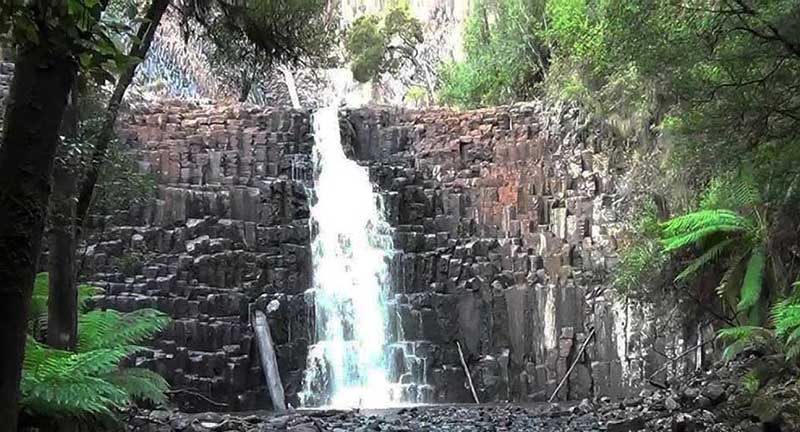 41 km south of StanleyAn unusual falls where 152 steep steps descend to the bottom of the cubic-basalt formed falls. These falls are very picturesque, particularly during the winter months. The track to the accessible viewing platform is beyond the falls. Four short walks lead to the base of these picturesque falls, its viewing platform, an old sawmill boiler and the nearby Big Tree.