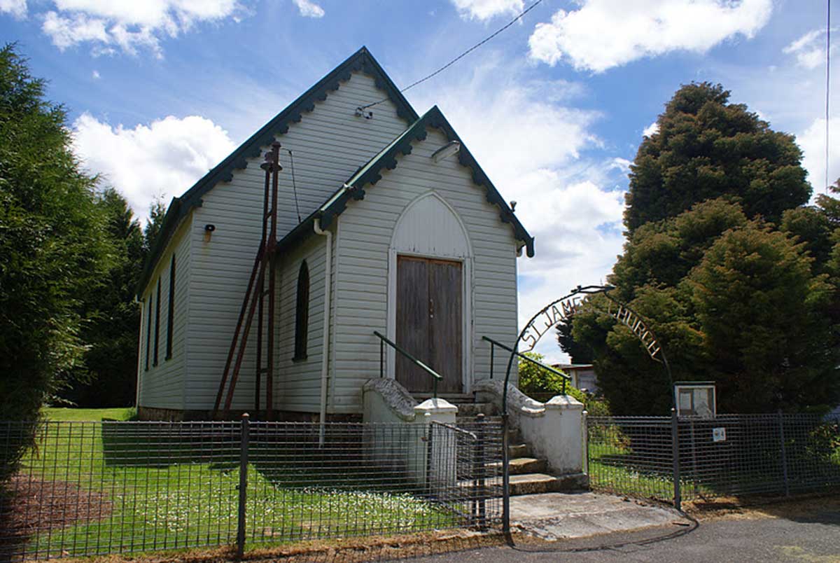 Waratah's 19th century prosperity is perfectly expressed in St James Church which was built in 1880. In 1889 the Mt Bischoff mine was being lit by electricity. The mine manager, H.W.F. Kayser had the electric light connected to the church. Thus St James became the first church in Tasmania to use an electric light. The church is located in Smith Street.